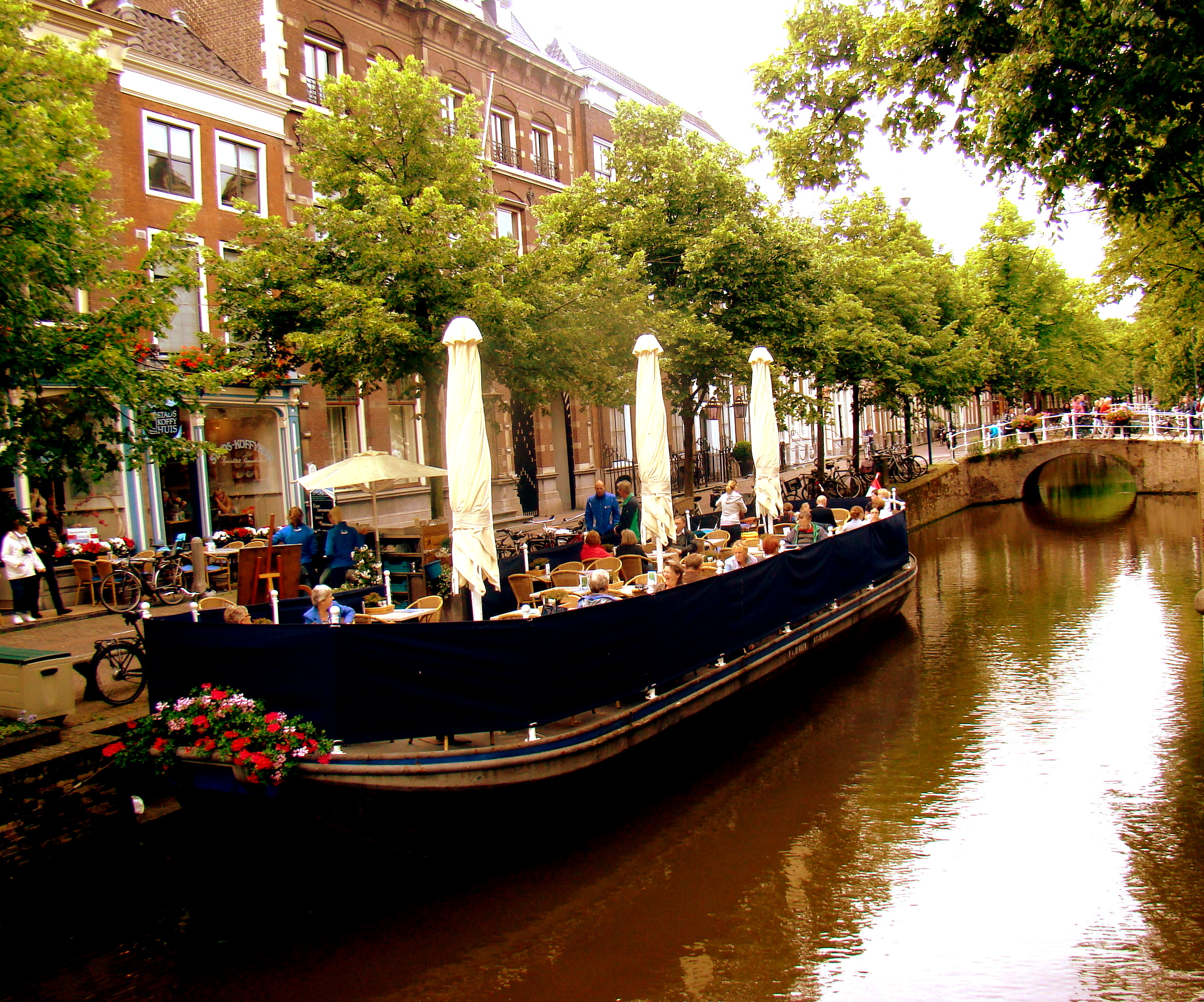 Do make sure to stop for a coffee by this lovely boat café to enjoy the tranquility of this picturesque town.
